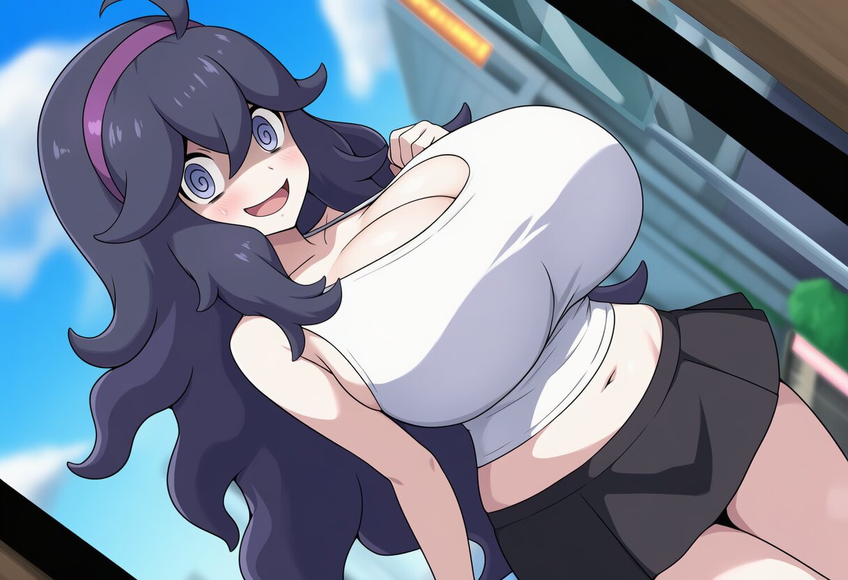 rosa (pokemon),sun visor is covering her eyes,official style,anime color,huge boobs,