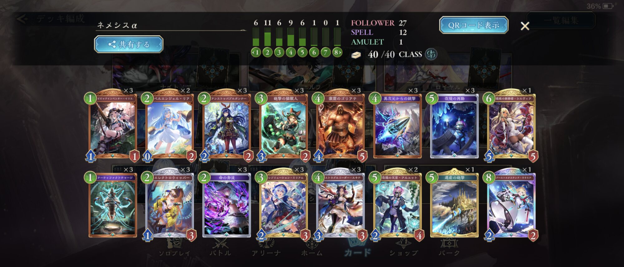 エーデルワイスは確かに強いし3積みたいのですが、4ターン目に出した時に土を全消費してしまうパターンが多かった為2に抑えてスペル枠を捻出してます