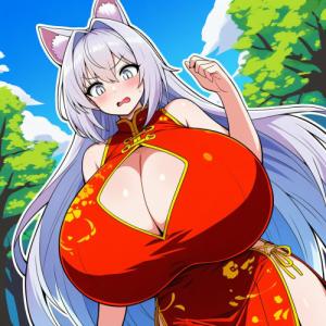 超乳銀髪ロング猫耳