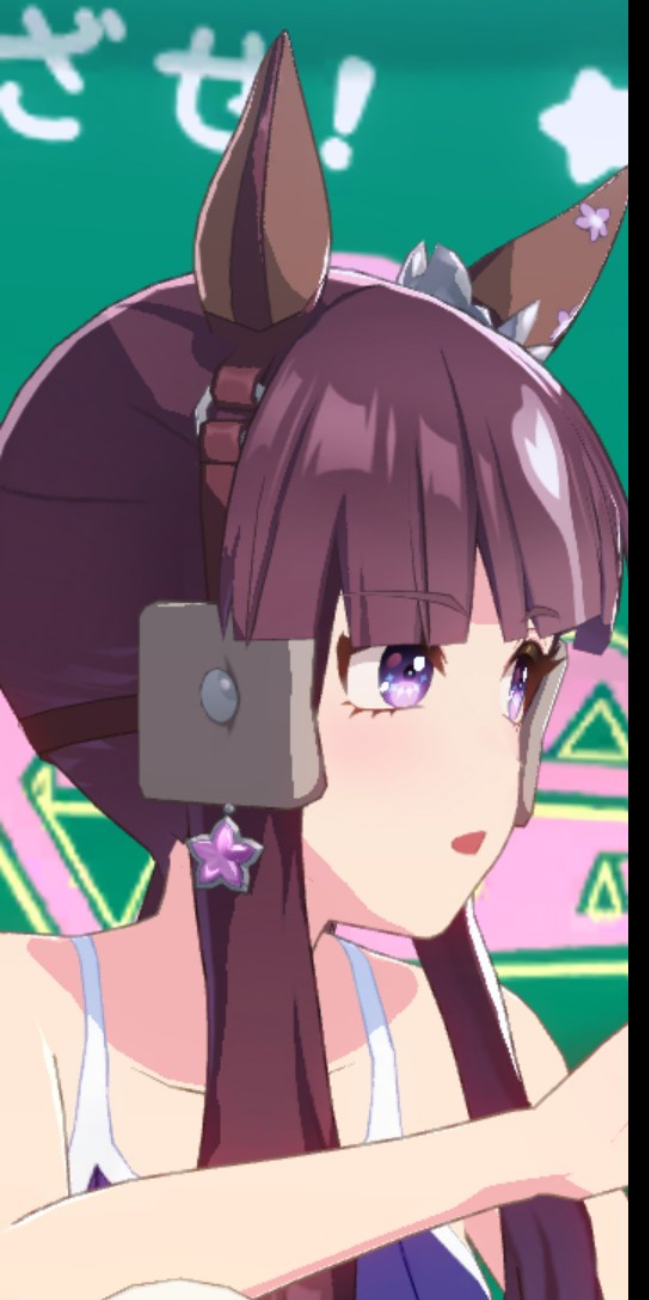 栗毛なのに鹿毛かってくらい髪色暗いし勝負服もなんかパッとしなくて話題にならないしオルフェ産駒なのに前髪ぱっつんのロングヘア美人顔なせいでゴルシに似てるし髪の毛にこんにゃくつけてるし