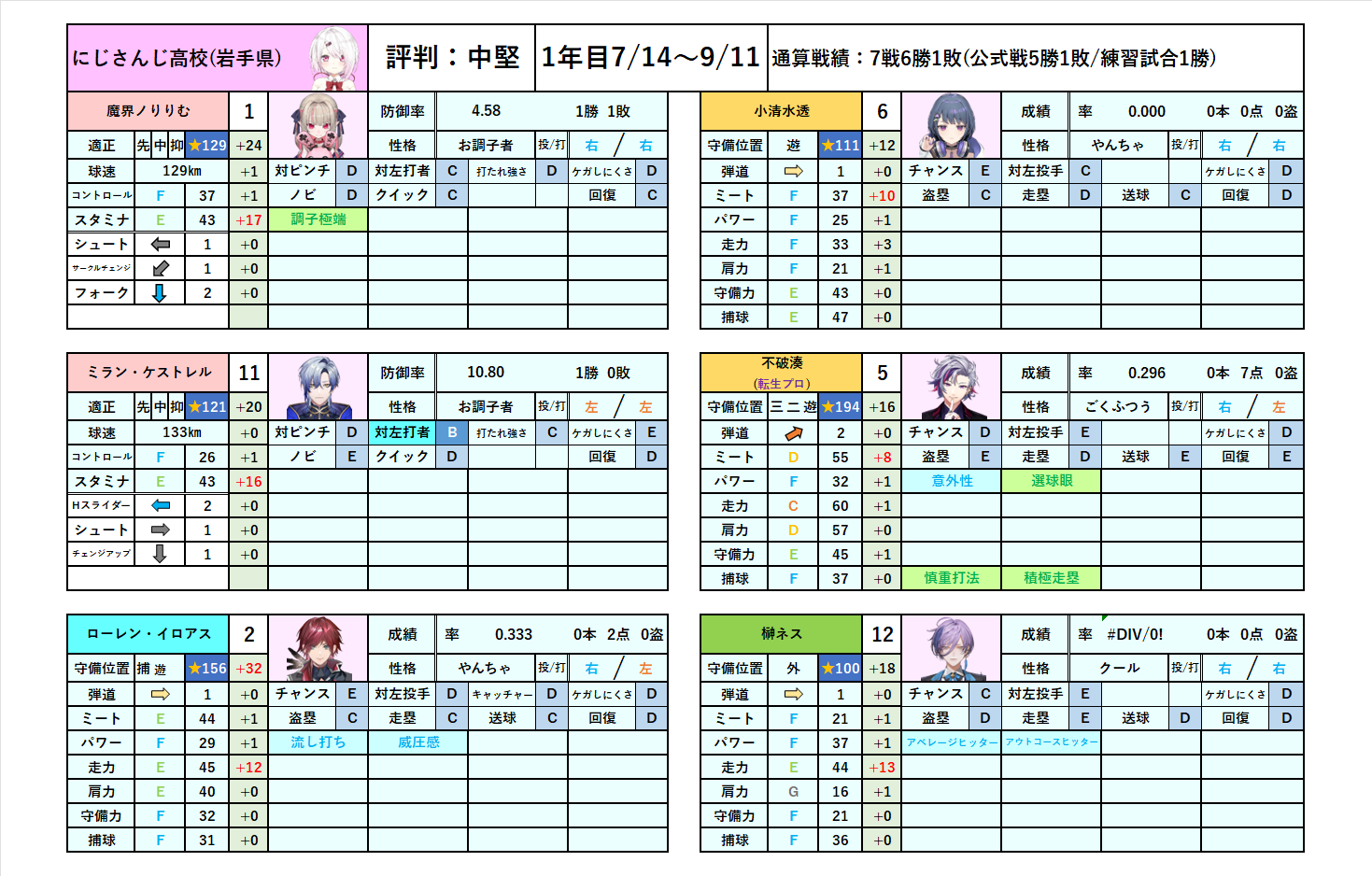 四球は痛いけど、ベンタクは世界大会目指せるステになったし、スカウト投手も転生で将来性持ちだからリリーフの心配も減った