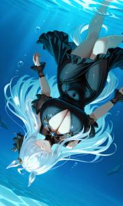 容姿:烏の濡れ羽色の艶のある黒髪ロングで前髪目隠れ、瞳は明るいマリンブルー、他が地味な為かリップは色付き艶ありのを塗ってオシャレするタイプ