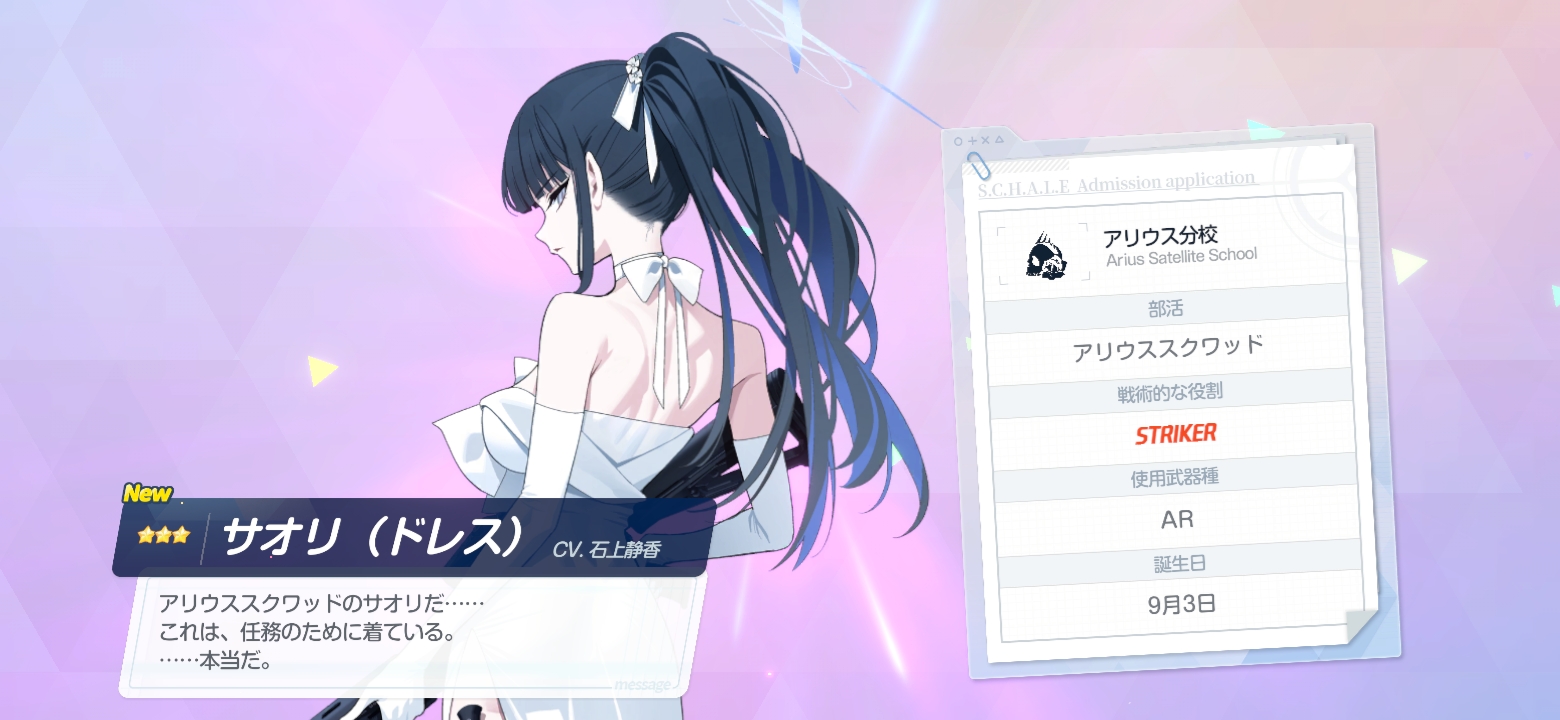 現在、水着キキョウ、水着ミヤコ、ドレスサオリ、ユウカは解放できてる。それも感想とか投下していきたい。