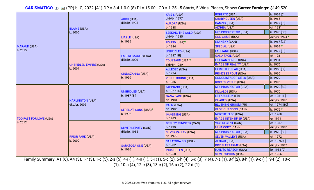 ブレイム(ゼニヤッタの連勝止めた馬)産駒のマロード(アメリカ芝G2勝ち)の産駒なんで微妙な産駒からサイアーラインが繋がってるロベルトらしさ?がある
