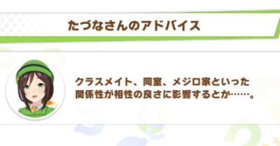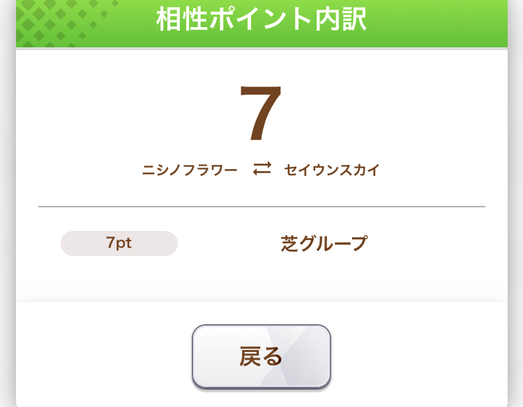 むしろ産駒成績や世代や適性中心の相性値だとどうしても低くなる分、ストーリーではフラウンスを多く絡ませることで西山オーナーへの配慮してると思う