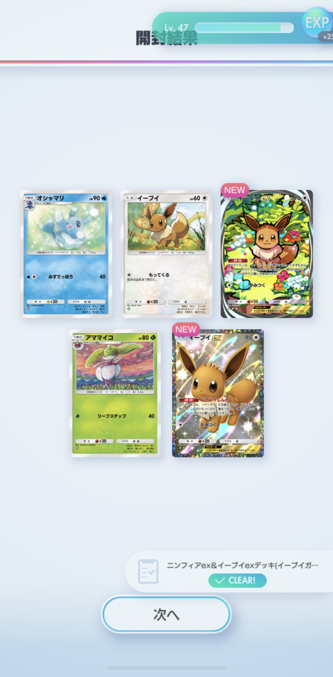 デイリー2パックでSRイーブイexとSRアシレーヌexゲット出来た!