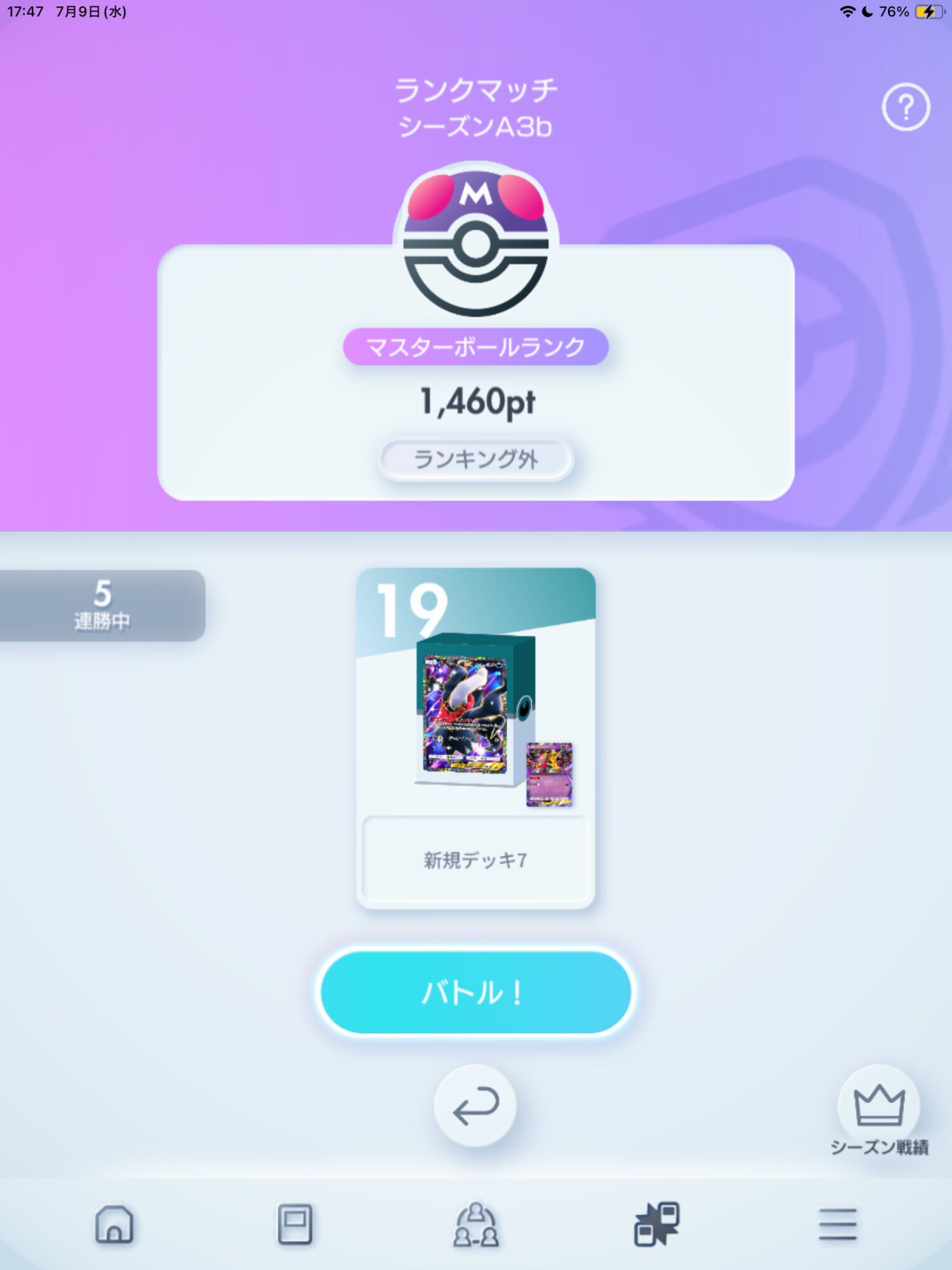 好きなカビゴンEXでうだうだしてたらハイパー1に落ちたので「戻すため…戻すためだから…」と言い訳をしてゲコニン使ったら8連勝してハイパー3になった