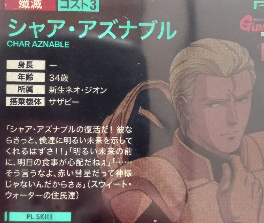 0093シャアの別カードだと、そもそもシャアが自分から大衆の偶像を演じているので、そりゃ祭り上げられるだろ、というのもある - 6二次元好きの匿名さん25/07/10(木) 10:33:54