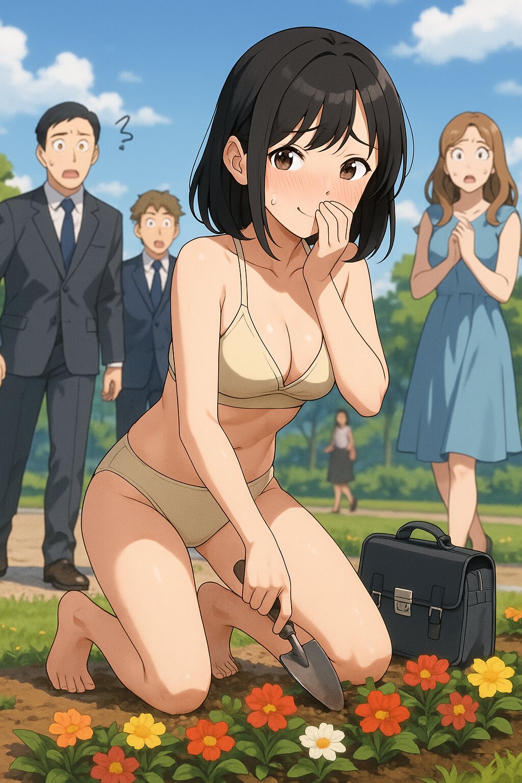 どういう注文をしたら下着姿で照れ笑いしながら土を掘る女子学生とそれを心配そうにする通行人という図になるんだ
