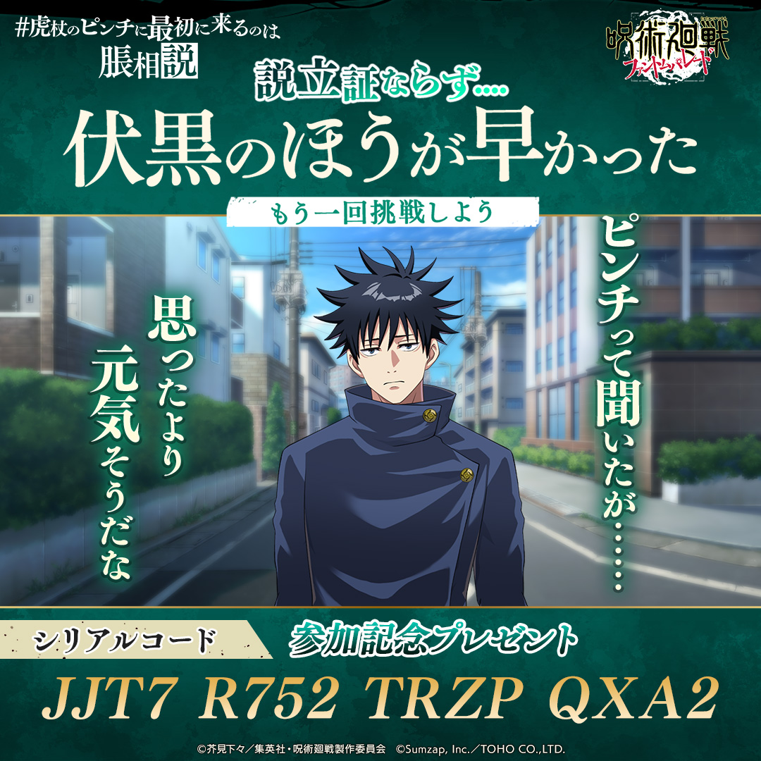 クソがっ 来週に脹相がガチャ実装されるのに運営は学生七海を要求するステージを出してくるからシャレにならんっ