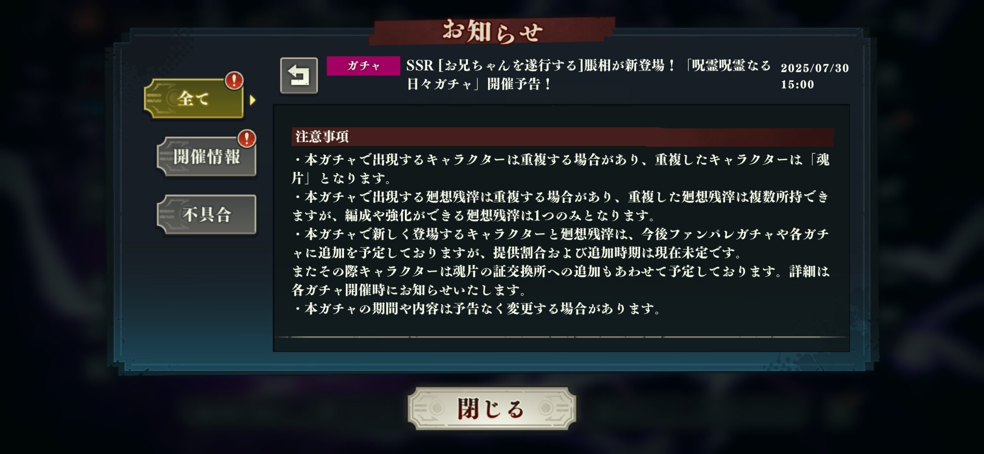 ワシとしてはありがたいけどガチャが回りそうな脹相をそっちに回すとは思えないんだ - 53二次元好きの匿名さん25/07/17(木) 08:34:52
