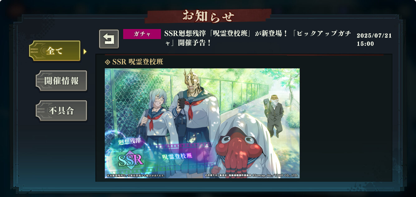 自然呪霊・フォーはたぶん無課金やキャラ引けない人の救済枠になりますから - 64二次元好きの匿名さん25/07/19(土) 20:48:01