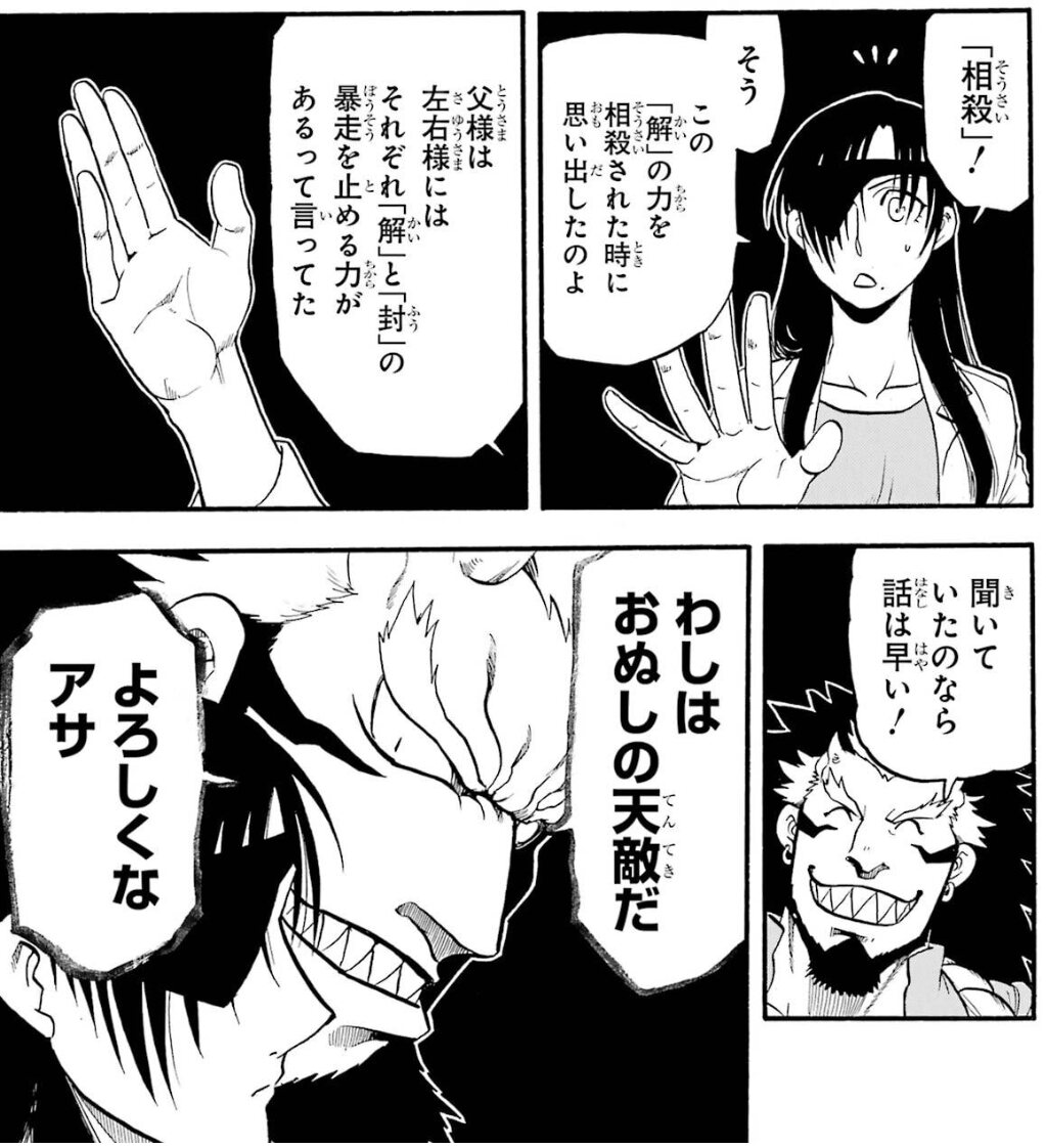 双子は女の子が解で男の子が封って決まってそうだけど、偶発的に封を手に入れてるのは今のところ女性(巫女)だけっていうの気になるね