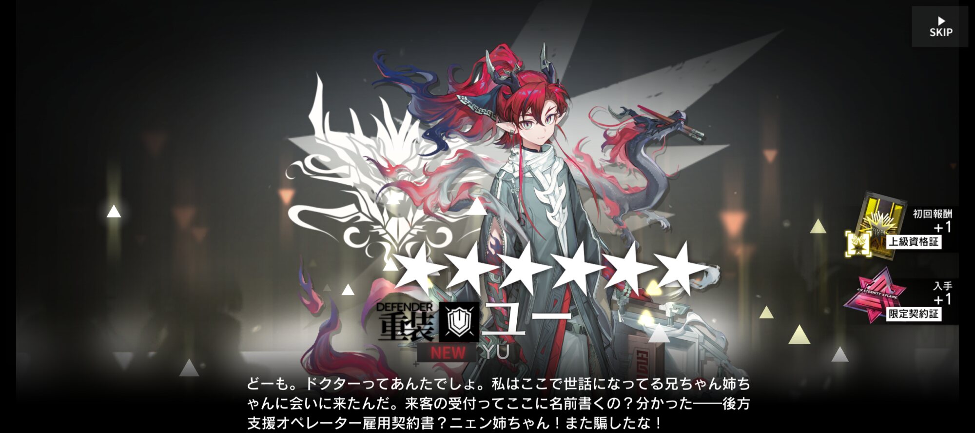 ジエユンはチョンユエのイベントの時に出てきた、アナサっていうサルカズの特殊種族のキャラ