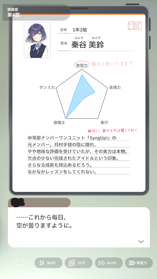 手毬シナリオでもTOP4入りを果たしていた様に、NIAのファン投票システムと相性が良いある意味手毬の逆を行くスタイルのアイドルに期待が高まる。