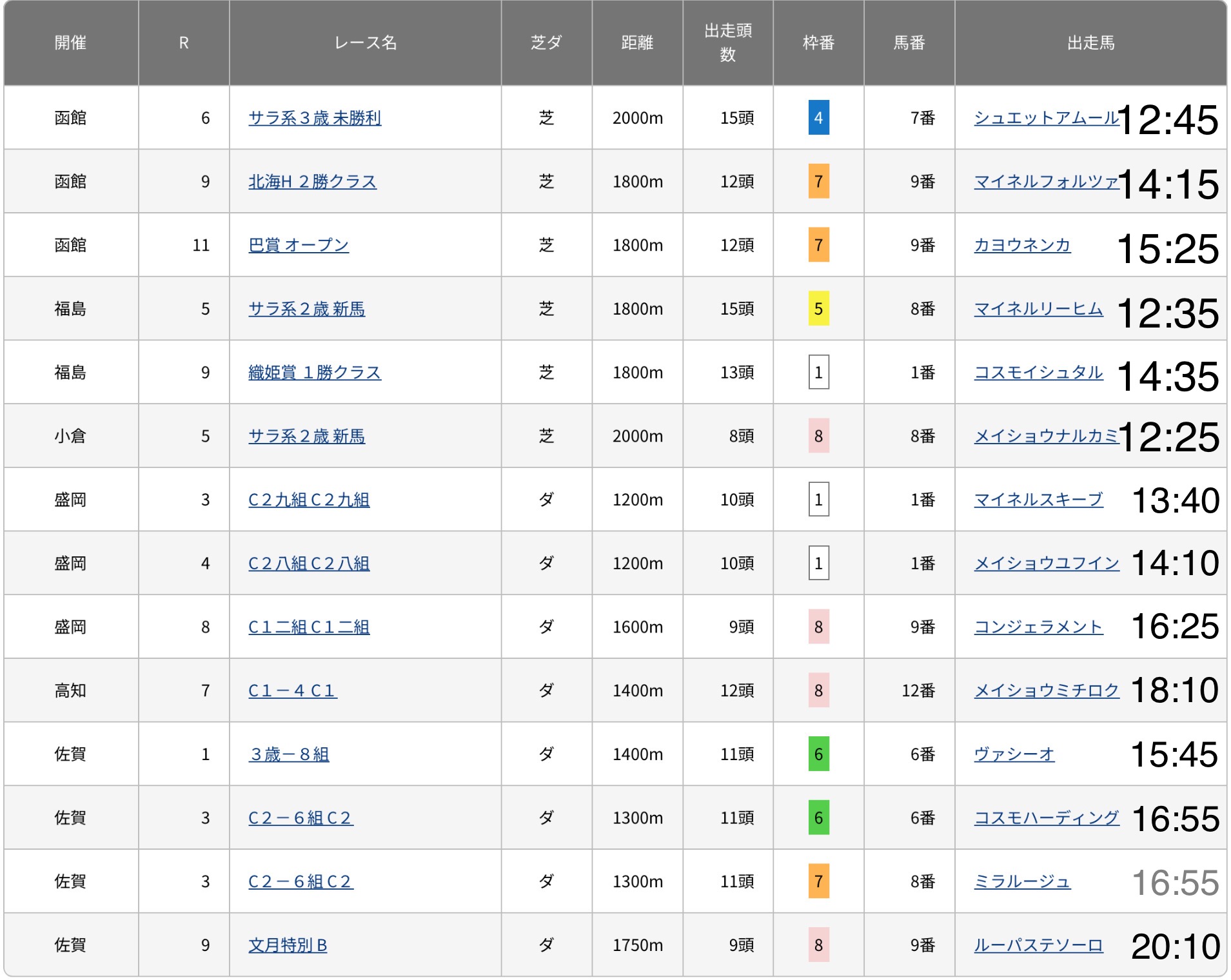 産駒の出走情報はここから