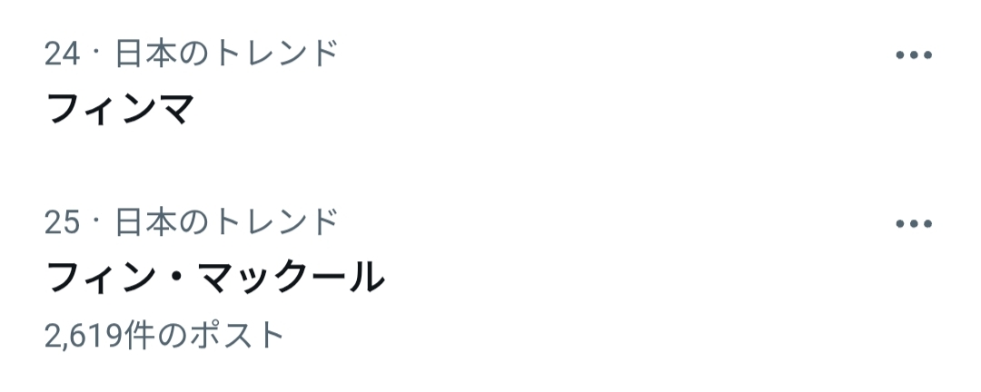 って思ってたら「フィン・マックール」でトレンド入り