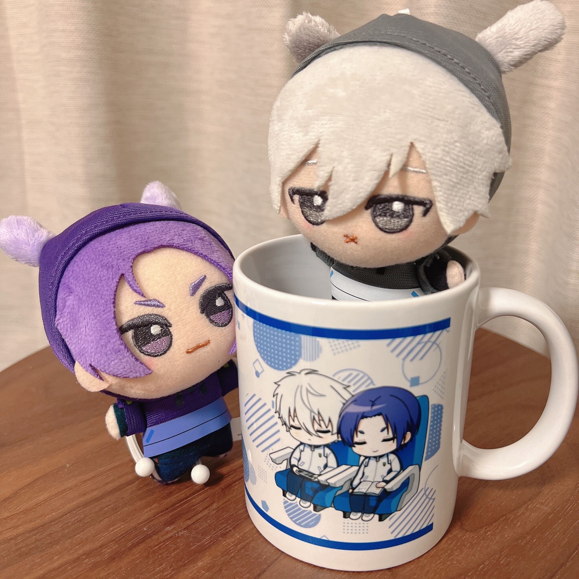 マグカップにINした凪ぬいも見守る玲王ぬいも可愛い