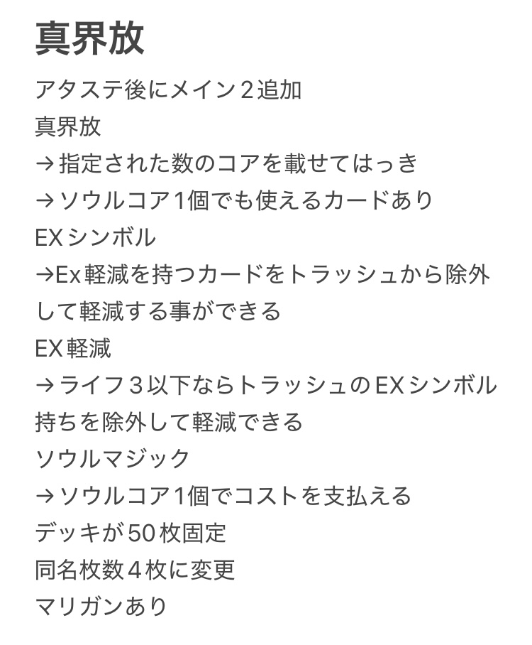 まあコアシステムの奥深さが魅力なのはプレイヤーとしてよく分かるけどさ…スタンダードは新規取り入れるためのもので現状新規が入らない原因のひとつがコア移動の過度な複雑さだったら少しでもシンプルにすべきだと思うんだよね(コアシステム自体を無くすとエターナルに持ち込めなくなる)