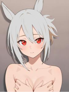 直後に第三者が到着して目に入った光景は全身裸になって2人をフォローしようとする黒カフェ、下半身裸でピンク髪の娘の視界に映らないようにしようとするマヤトレ、そして下半身裸で顔を真っ赤な涙目にした小柄でピンク髪なウマ娘の姿だった
