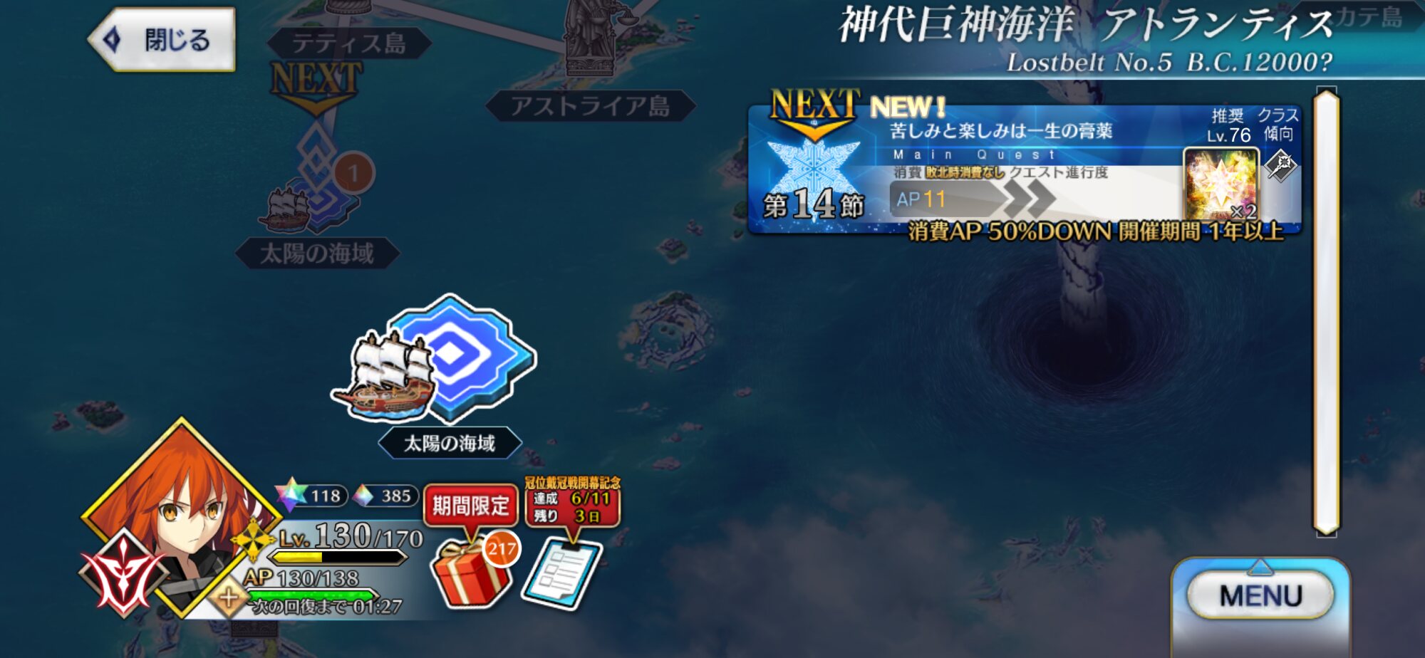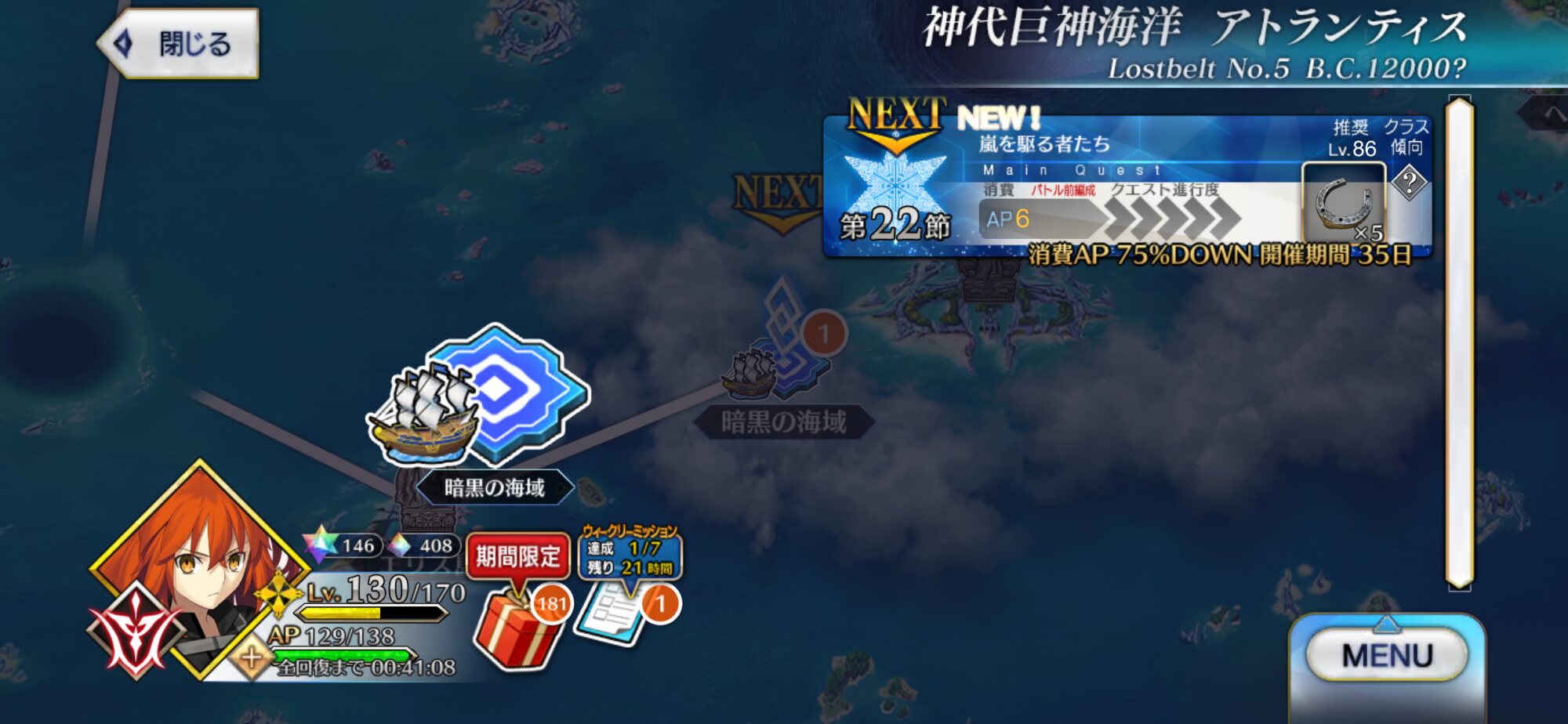 できれば周年までにアトランティスを踏破したいが!……なんか無理そうな気がしてきたぞぅ!!