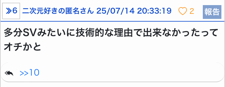 - 7二次元好きの匿名さん25/07/14(月) 20:33:32