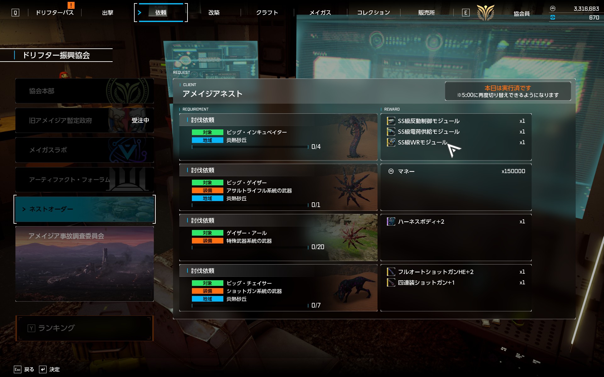 あと修正後やった感じ、体感修正前より5枠6枠の場合、報酬が素材になりやすい感じがする。