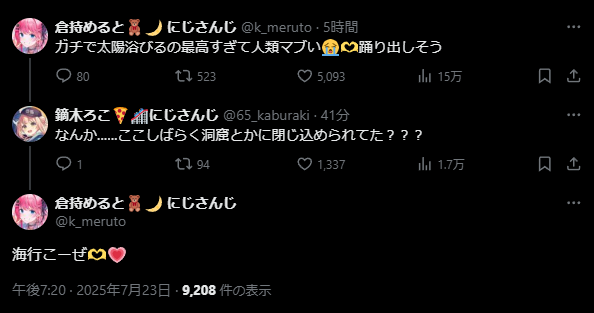 鼻炎自体も治りにくいものあったりするし長期になってもいいからしっかりと休んでほしいけど長引けば長引くほど配信できないことでメンタル病みそうだし難しいところよな - 164二次元好きの匿名さん25/07/25(金) 15:35:40