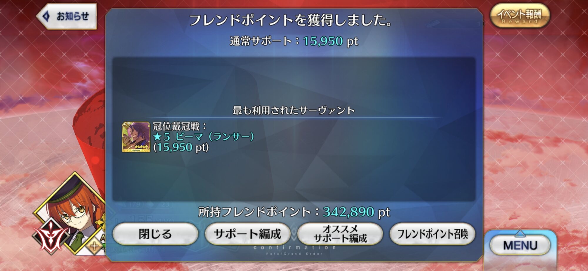 冠位戦だけでわえちゃんの絆が0→10になったよ