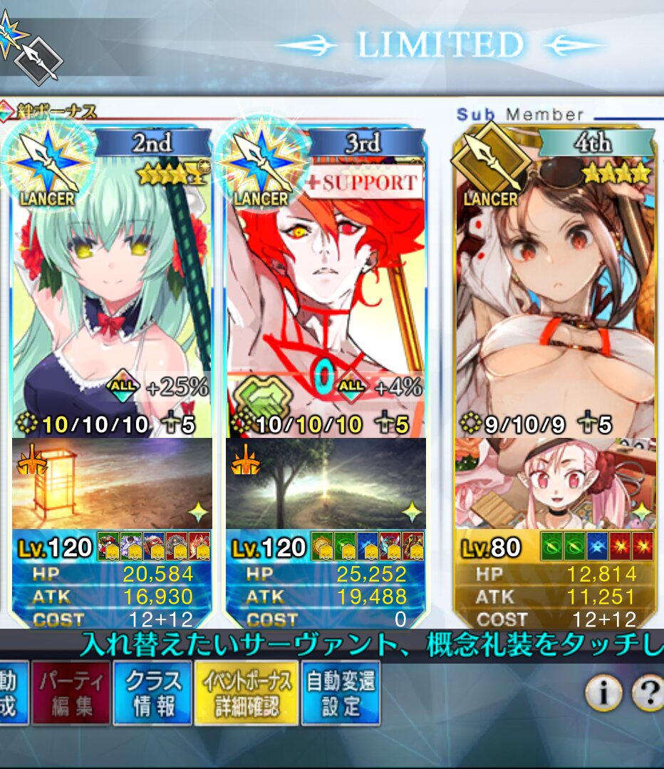 時々いらっしゃるグランド鯖で120で絆礼装つけてない人は絆なしで120にしたのかなぁ…とか考えてる