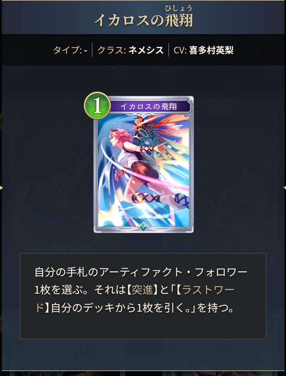 旧シャドバのAFならめちゃくちゃ強かったと思うけど今のAFってコピー含めて基本コスト高いから効果発揮するのが難しそう。先1で使えないし現実的に使えるターンは3,6,7あたりかな?