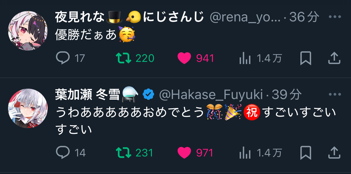 にじGTAのときのはかちぇも、にじ甲期間中の夜見さんも、こう…なんかこう…!!!ってなるのはめちゃくちゃ分かる