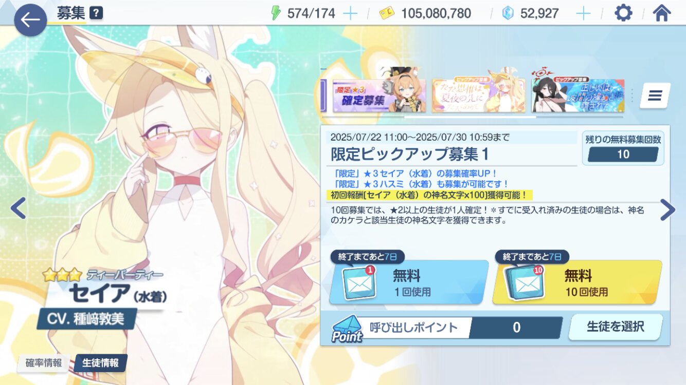 セイア出なかった……100連したのに