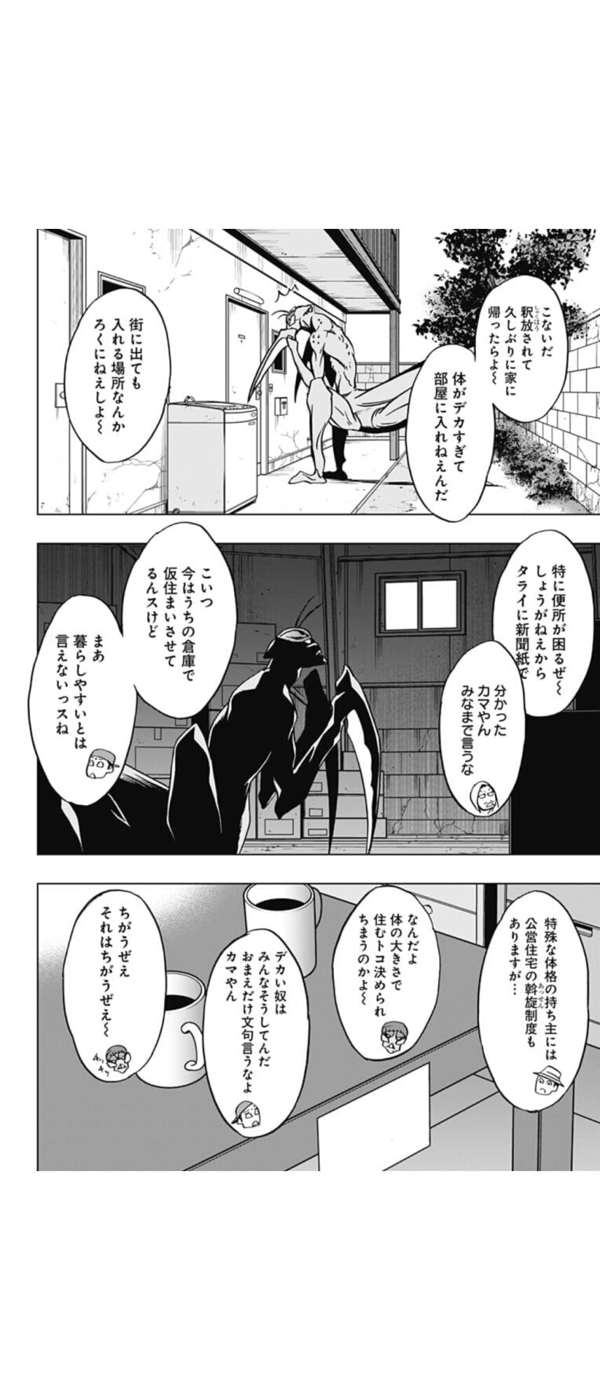 この世界の人は生まれたときから周りに異形型がいるんだから、現実の人間の感覚で考えるのはちょっと違う気がするな