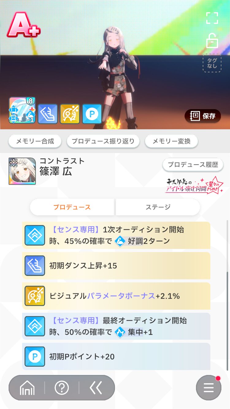 獲得ガイドみ やる気型育成してみて活動支給踏んだら、好印象型じゃ中々出し渋ってた星屑センセーションやみんな大好きとか一発で何回も出しに来るのはやめろ
