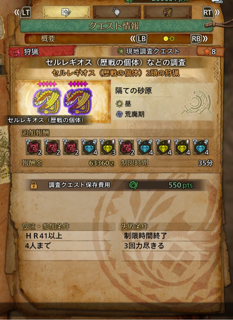 蒼玉確定だけど歴戦ラギアと歴戦レイアのクエで良かったら貼るのん