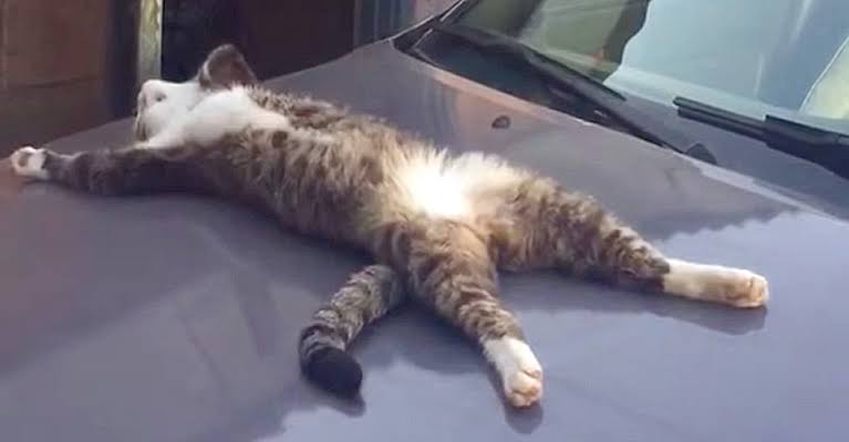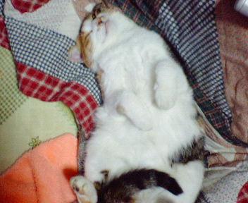 寝てる間に猫のお腹をなでなでもふもふ……w