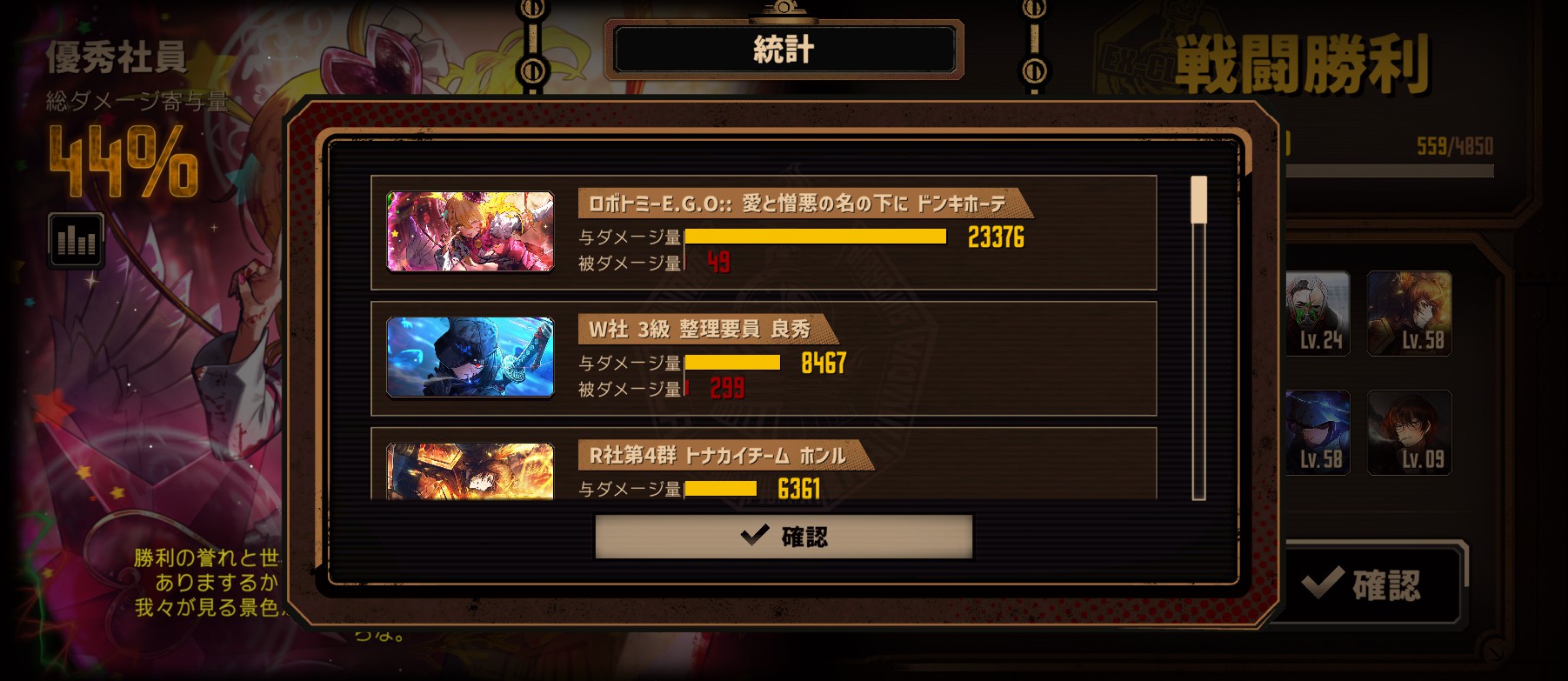 戦闘勝利・敗北時のアナウンスは任意でクリックしなくてもスキップ可にしてほしいんだよね