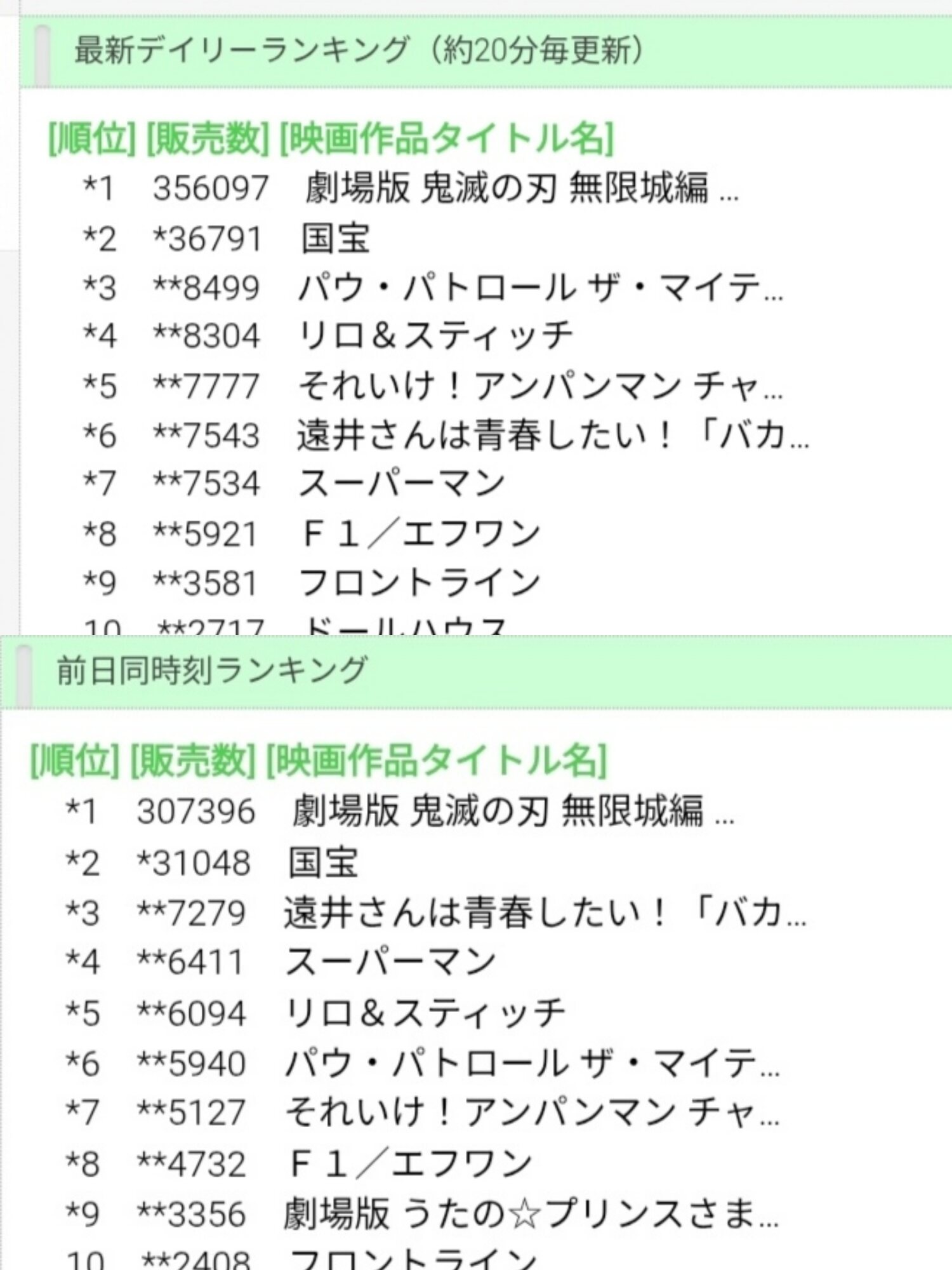 デイリー上映25分前販売数合計ランキング:20201019