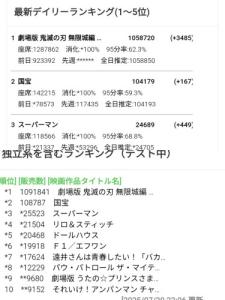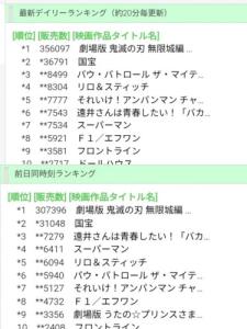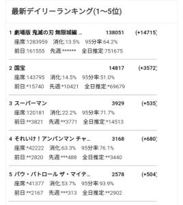 ちなみに無限列車の初日以外の平日1位よりプラス10万してる