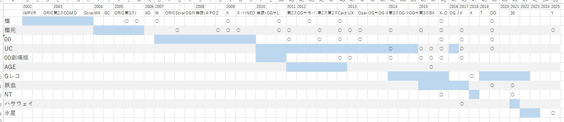 直近の水星はともかくとしてアナザーガンダムで商品展開やコラボでよく見るのはG、W、種、00っスね