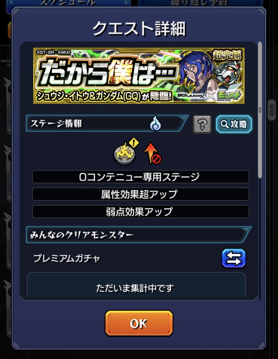 モンストの日トク玉でニャアン三体目が出たので二体出たマチュも含めて追加超究極もいただきだな