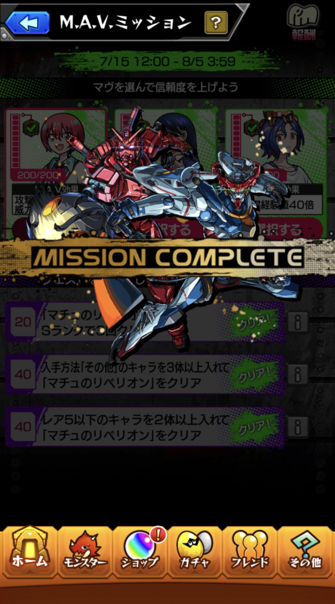ガチャで来てくれたキラとフレンドさんのスレッタのおかげでなんとか即死攻撃直前でドゥー倒せた……!ゲーツとMAV組ませたくて頑張ってたので一安心 ミッションはのんびり進めることにするぞ