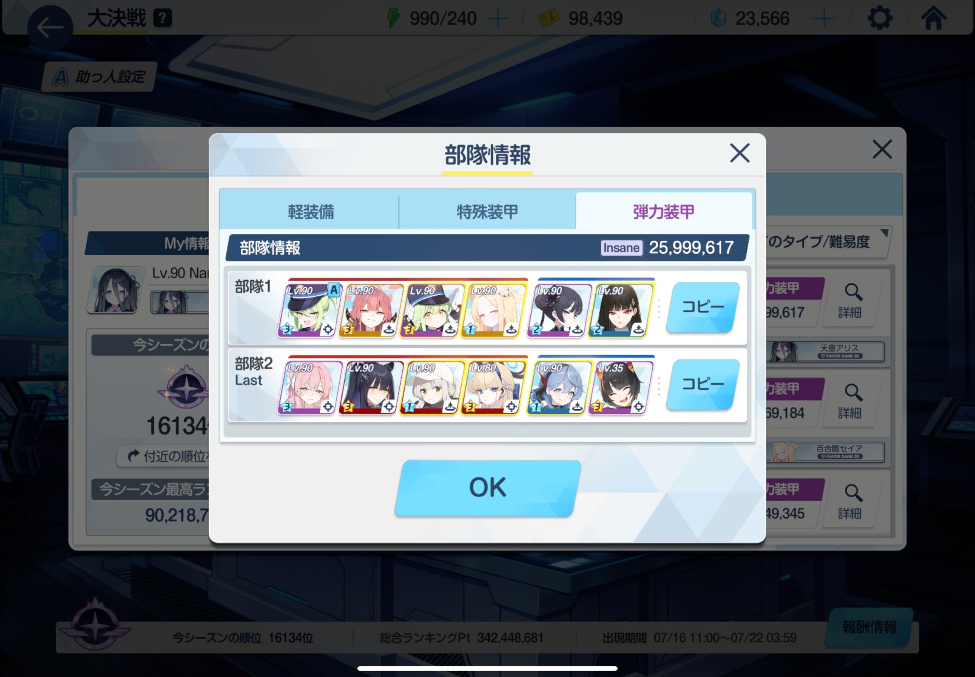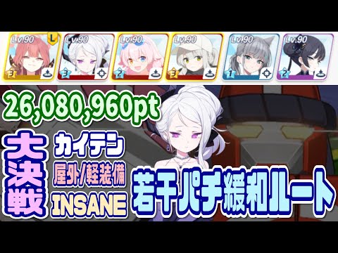 【ブルアカ】軽装備:若干パチ緩和ルート 大決戦カイテン屋外 INSANE 1凸 26,080,960pt【ブルーアーカイブ】