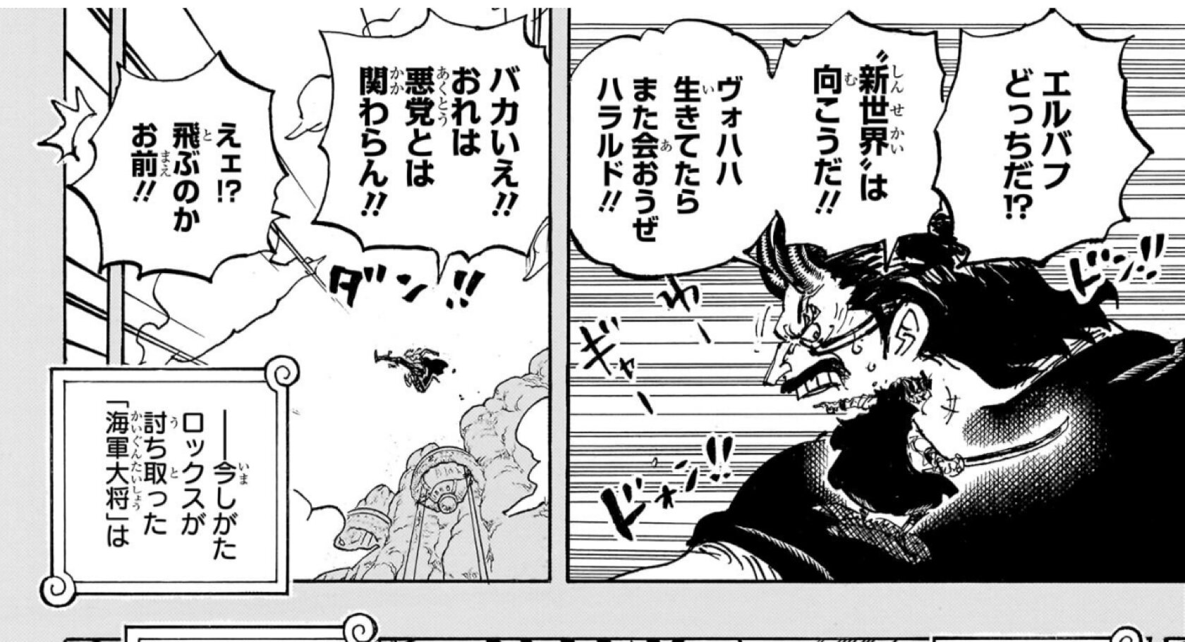 ハラルドがデカすぎるだけなのは分かってるけどハラルド用の机に乗ってるロックス海賊団の面々ミニチュアみたいで可愛い