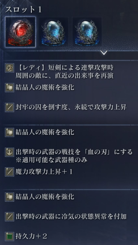 なんかやたら結晶魔術強化遺物がクリア報酬や遺物ガチャから出るんだよね