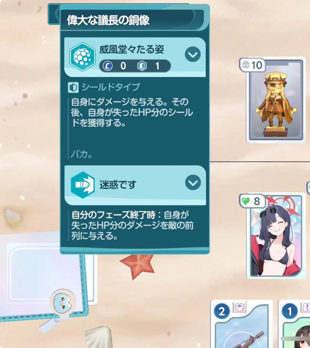 ミニゲームのカードに描かれてるフレーバーテキストはリラックスできますね