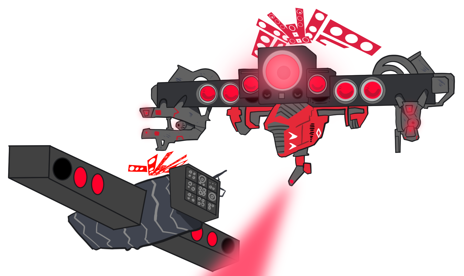 セフィラ・テレビタイタン→本家タイタンテレビマンとは異なり、言葉が丁寧且つ通常再生になり、仲間への情が失われている。背部の武装は大幅改造された事でWarsのトイレエンペラーの様に背部に大型の腕を一対持ち、その両腕にはジャガーノートアストロトイレの様なEMPショックウェーブキャノンとエナジーシールドが装備されている。右腕にはCCSCを元に作られた複合兵装が装備され、エネルギーシールドを貼れる他エネルギー弾や強酸・クラスター弾を発射出来る仕組みになっている。左腕はタイタンテレビマンのエナジーソードを二本装備した様な見た目になっており、刀身がかなり大きくなった。又、彼の黒霧テレポートはデカグラマトン製の機械以外はテレポートに干渉不可能な仕組みになっており、スペシャリストアストロトイレを送り込んで基地の偵察をする事が出来ない。実力こそ高いが想定外の事態に弱く、相手が自身の想定していない動きをすると反応が数秒遅れる致命的な弱点がある - 158二次元好きの匿名さん25/08/08(金) 20:57:36