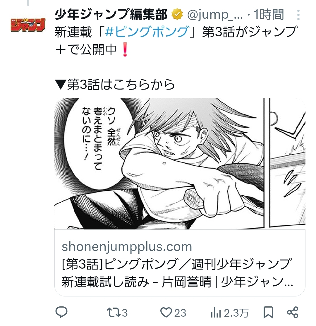 意地でもピングポングに人気漫画になってもらいたくなってきたな。元々気に入ってた漫画だったし
