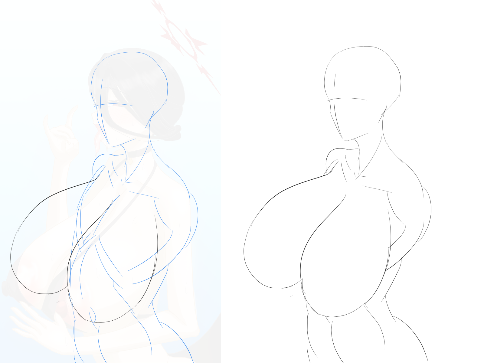 描きたい構図のラフを描いてそのまま進めていった結果だと思うんだけど
